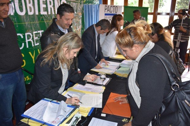 En una importante jornada que se llevó a cabo en La Colonial, muchos compradores y vendedores merlenses firmaron nuevas escrituras, en base a la ley 10.830 de regularización dominial de interés social. El acto fue organizado por la Subsecretaría de Tierras y Viviendas de Merlo y lo encabezó el Subsecretario Edgardo Coronel, quien también se suscribió a este nuevo programa.