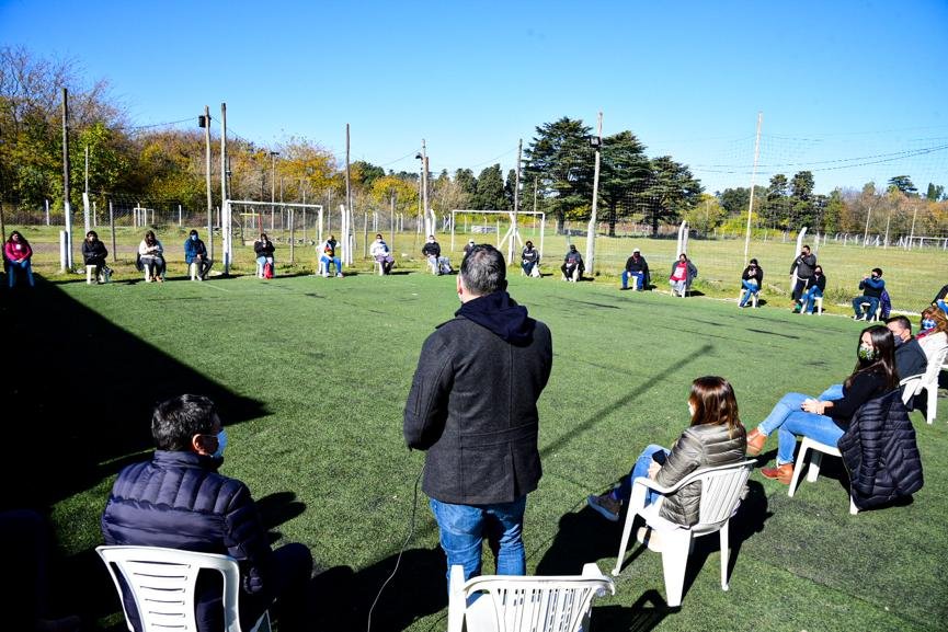 El Ministro de Desarrollo Social de la Nación, Daniel Arroyo, participó junto al Intendente Gustavo Menéndez de uno de los puntos solidarios en el distrito, con el objetivo de supervisar tareas sociales y sanitarias que se realizan para los vecinos, en esta oportunidad en el club El Zorzal de Pontevedra.